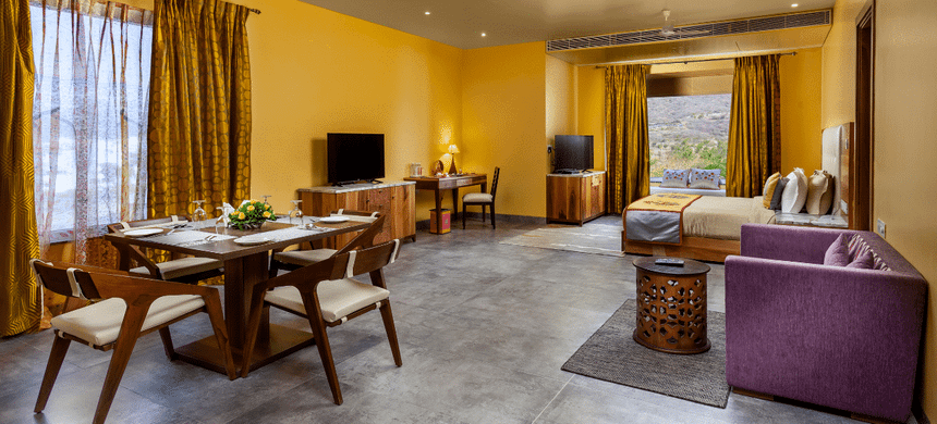 Justa Sajjangarh offers comfortable, modern rooms with bright interiors and good views. The rooms feel warm and welcoming, making guests feel at home during their stay. The property is suitable for family groups who want a clean, stylish and peaceful stay during the wedding.
