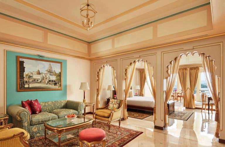 The palace has roughly 65 rooms and suites designed in traditional Mewar style. Guests staying here enjoy royal décor, arched windows, antique artwork and beautiful lake or courtyard views. The rooms offer a comfortable stay for families who want a royal experience during the wedding functions.