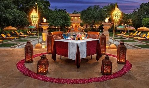 The Oberoi Rajvilas is a luxury heritage resort set across large green gardens on the outskirts of Jaipur. Built like a traditional Rajasthani palace, the resort offers privacy, peace, and high-end comfort. Known for its world-class service and beautiful setting, it is one of the most preferred venues for luxury stays and destination weddings.